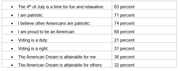 A recent survey asked Americans about the Fourth of July, patriotism and the American Dream. Here’s what they said: