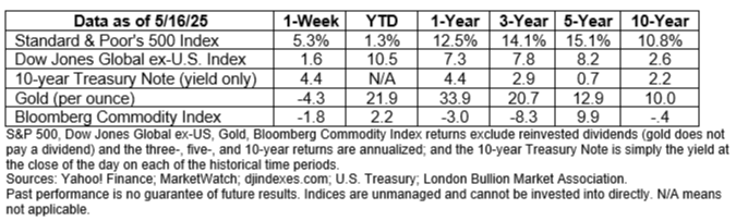 Over the week, U.S. stock markets saw solid gains with the Standard & Poor’s 500 Index moving into positive territory for the year to date. U.S. Treasury yields ended the week near where they started.
